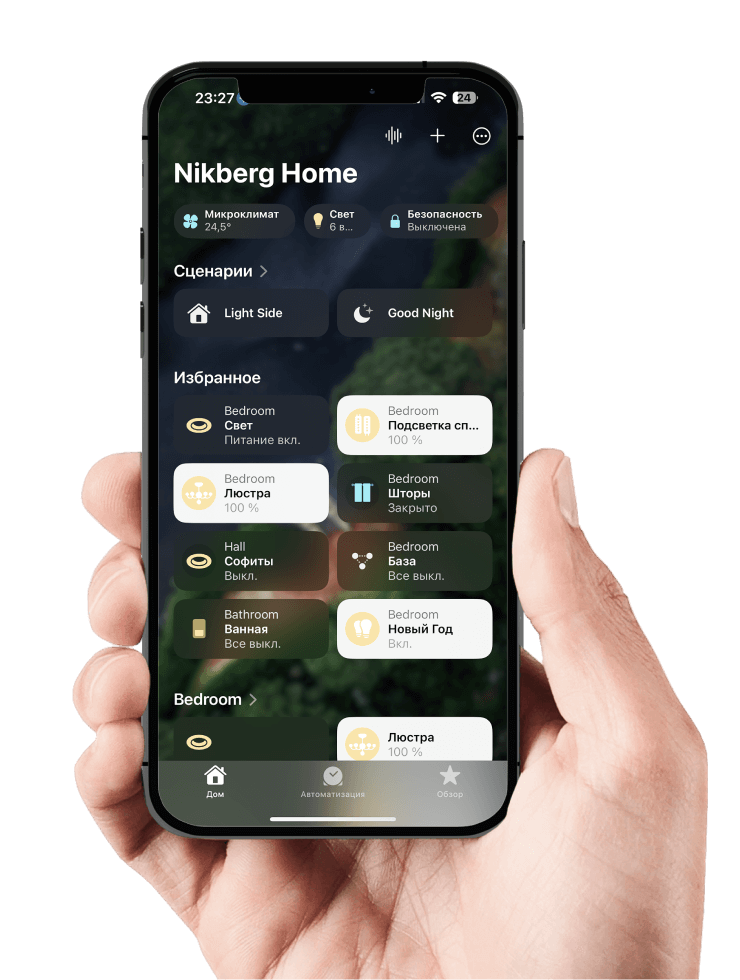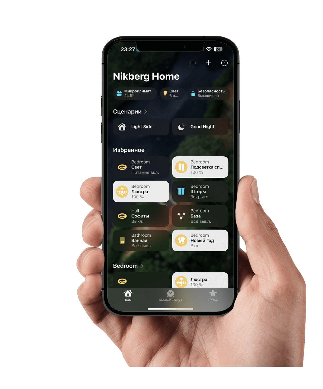 Любой выключатель становится проходным, вам не нужно продумывать привязки заранее. Мастер-кнопка выключает весь забытый свет и розетки.