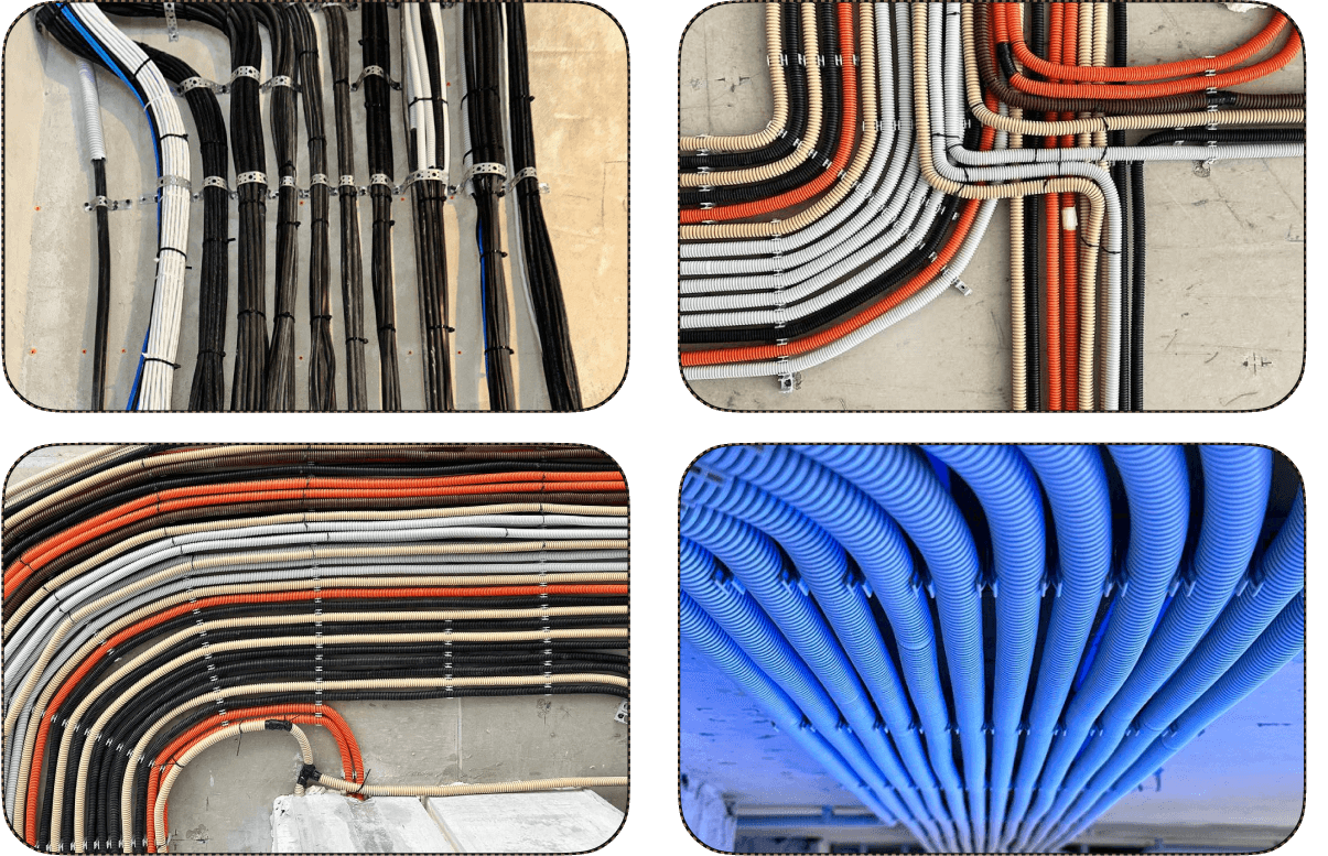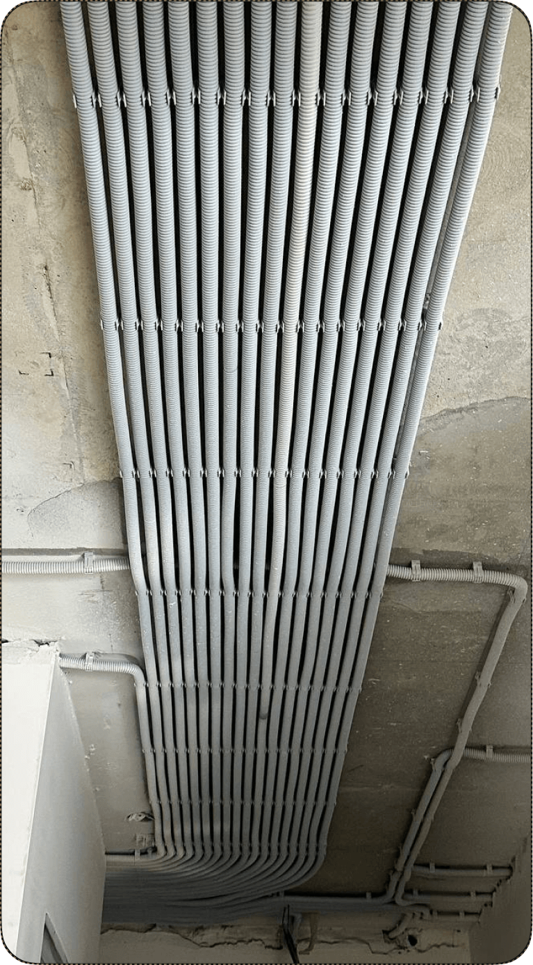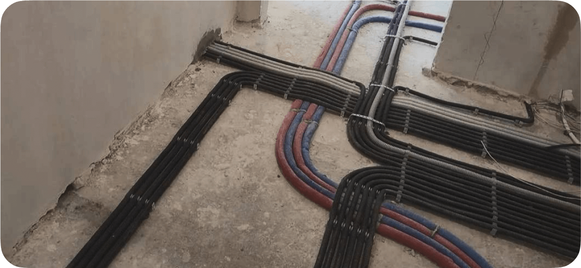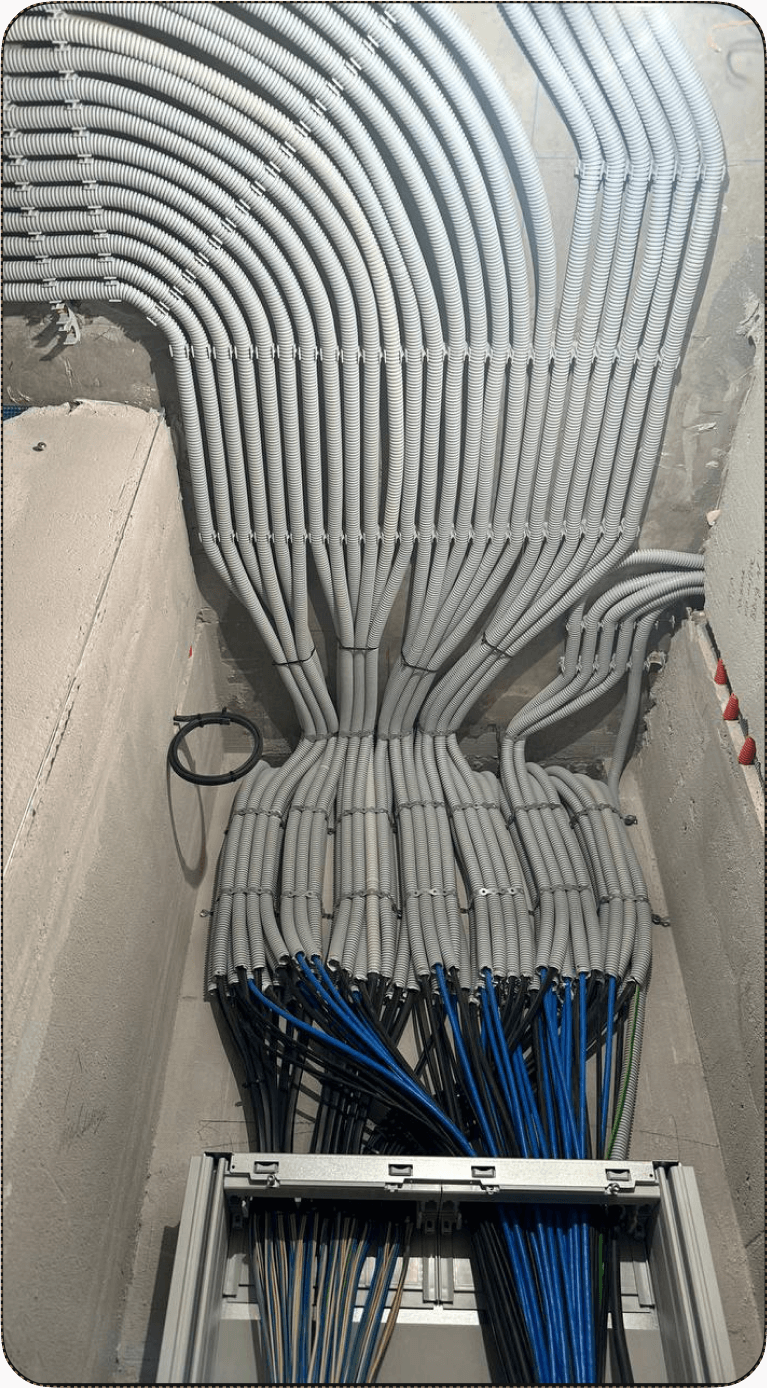 Тянем силовые/слаботочные провода и устанавливаем черновую электрику
